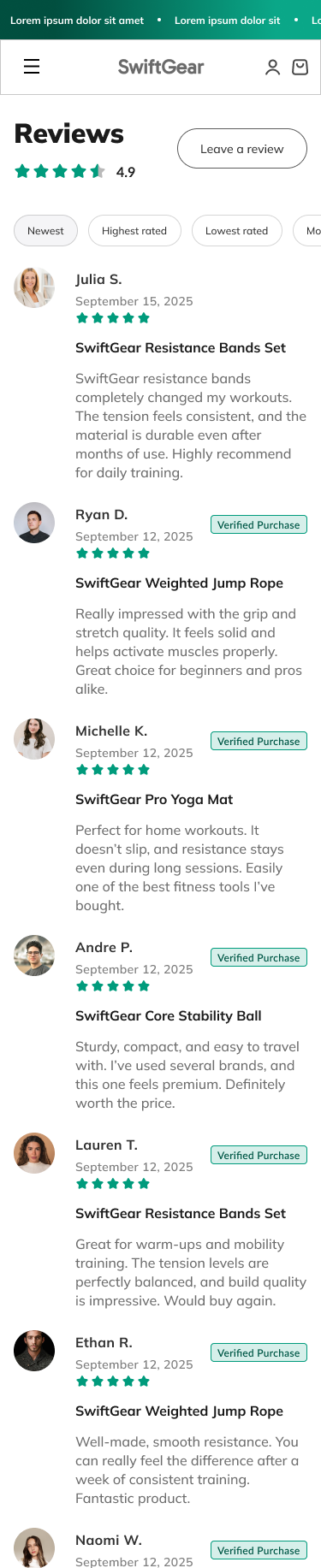 The SwiftGear product page redesign was focused on creating a high-performance shopping experience that merges athletic precision with conversion-focused design. The goal was to present SwiftGear’s equipment as both powerful and premium - built for serious athletes yet approachable for everyday users.